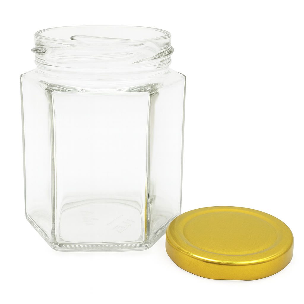 Looking for the perfect glass jars for your homemade preserves, wedding favours or business packaging? Our 190ml 8oz hexagonal jam jars with gold twist-off lids are classic, elegant and practical making them ideal for storing homemade treats such as jam, marmalade, chutney and jelly. Not only that, but they also look wonderful when filled with sweets, pulses and grains, or crafting equipment including beads and buttons, and can even be used for homemade candles – making them a firm favourite amongst crafters, gift makers and food producers alike. The possibilities are endless!